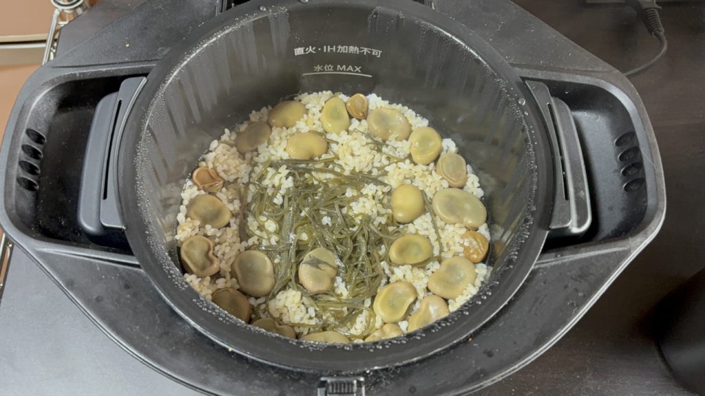 •そら豆の玄米炊き込みご飯調理手順