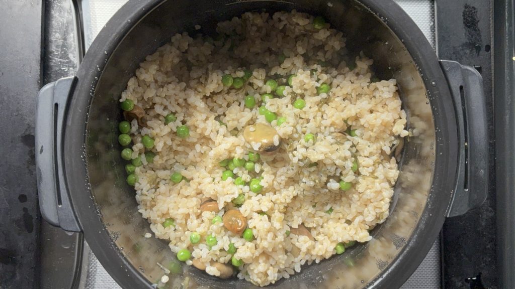 主張しすぎない6gの塩加減が絶妙で、玄米そのものの風味と、そら豆・グリーンピースの自然な甘みを引き立てています。