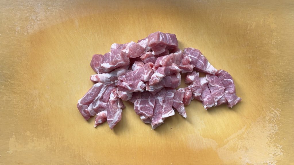 豚肉は1cm幅の細切りにする