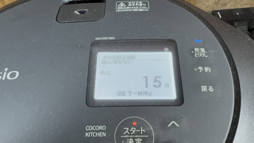 3.好みの設定加熱・強火で調理スタート