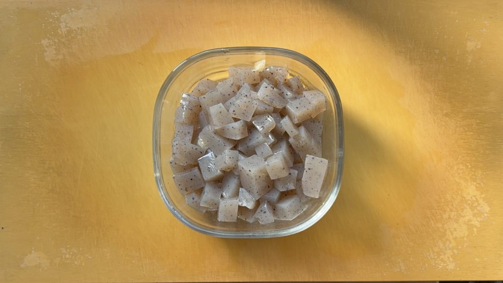 こんにゃくは1cm角に切り、湯通しをして水気を切る