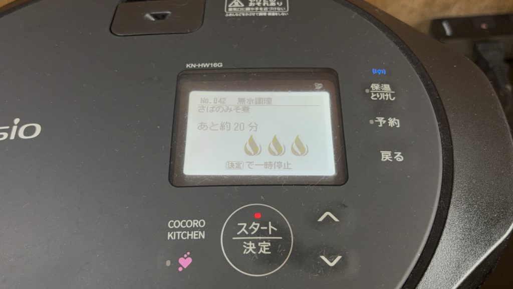 3.自動メニュー【さばのみそ煮】で調理スタート