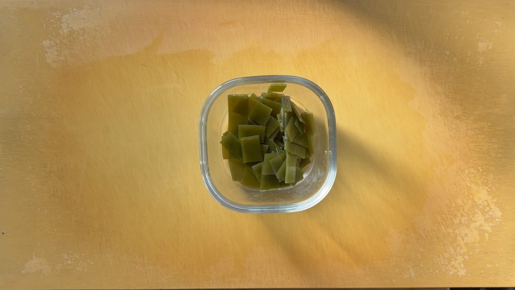 昆布は水に10分ほど浸して、1cm角に切る