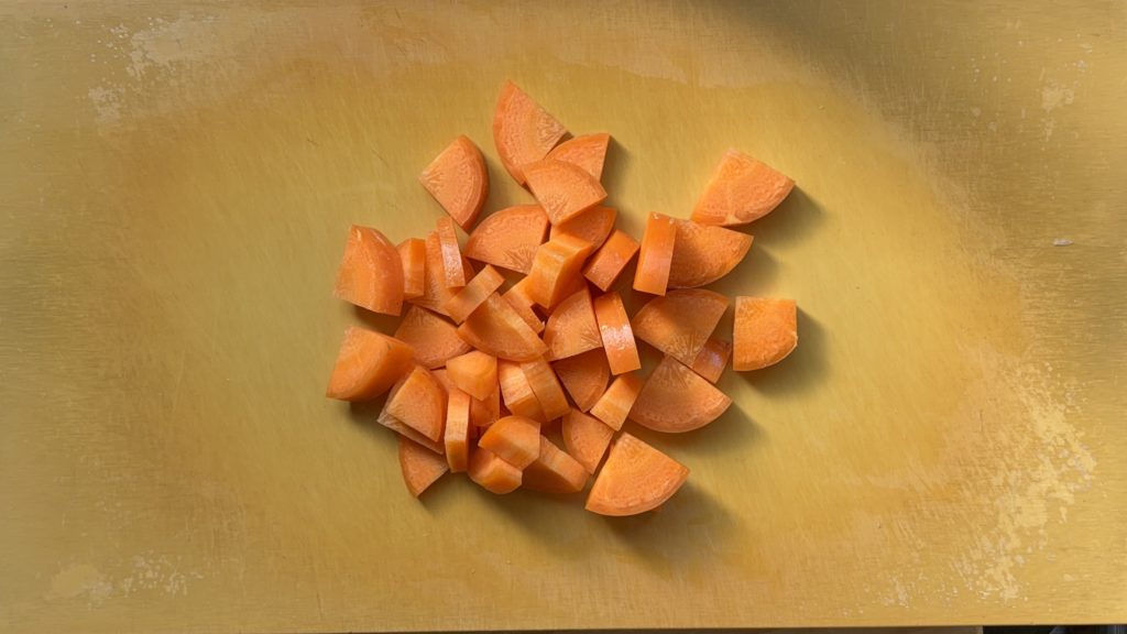 にんじんは1cm幅のいちょう切りにする
