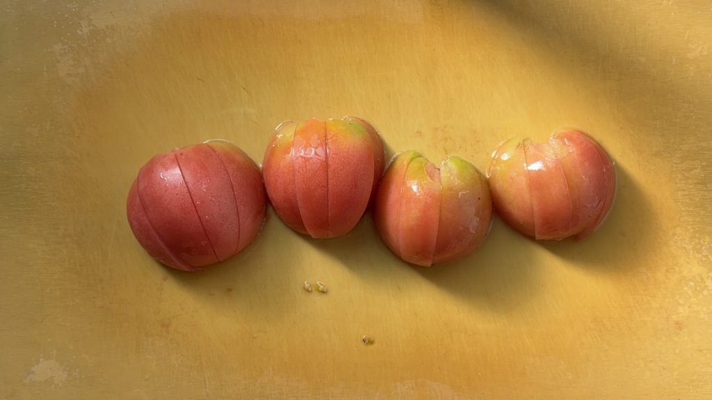 トマトは加熱されてほんのりとろけ、酸味が穏やかになってソースのような存在感に。