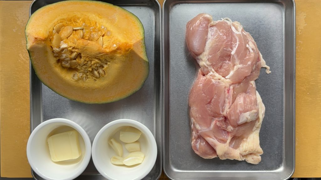 そこに塩麹のコクと、バターのまろやかさが重なる──まるで優しさに包まれるような一皿が、「鶏もも肉とかぼちゃのバター煮」です。