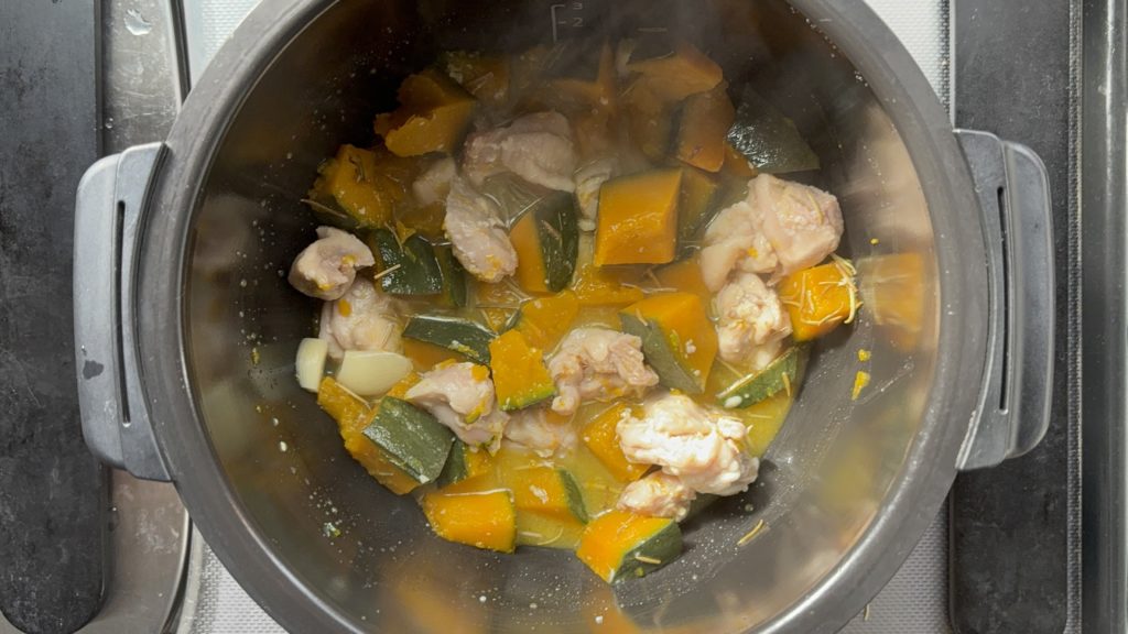 全体の調理時間は30分ほどかかります。材料の下ごしらえに10分、ホットクックの加熱が20分ほどです。