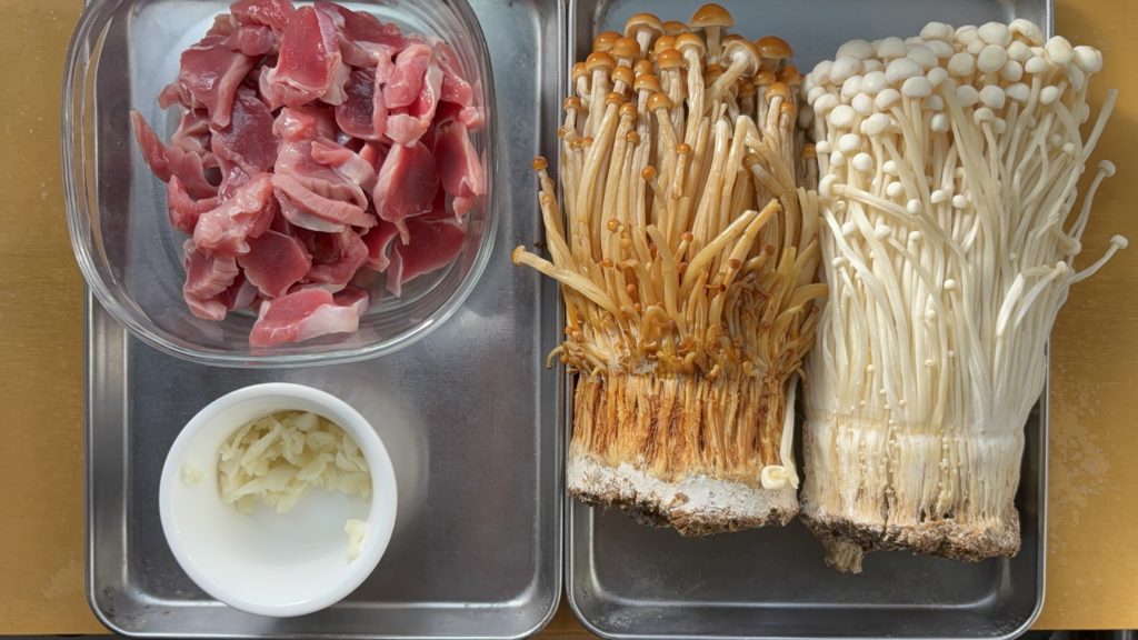 •2種のえのきと砂肝水菜のナムルの調理手順