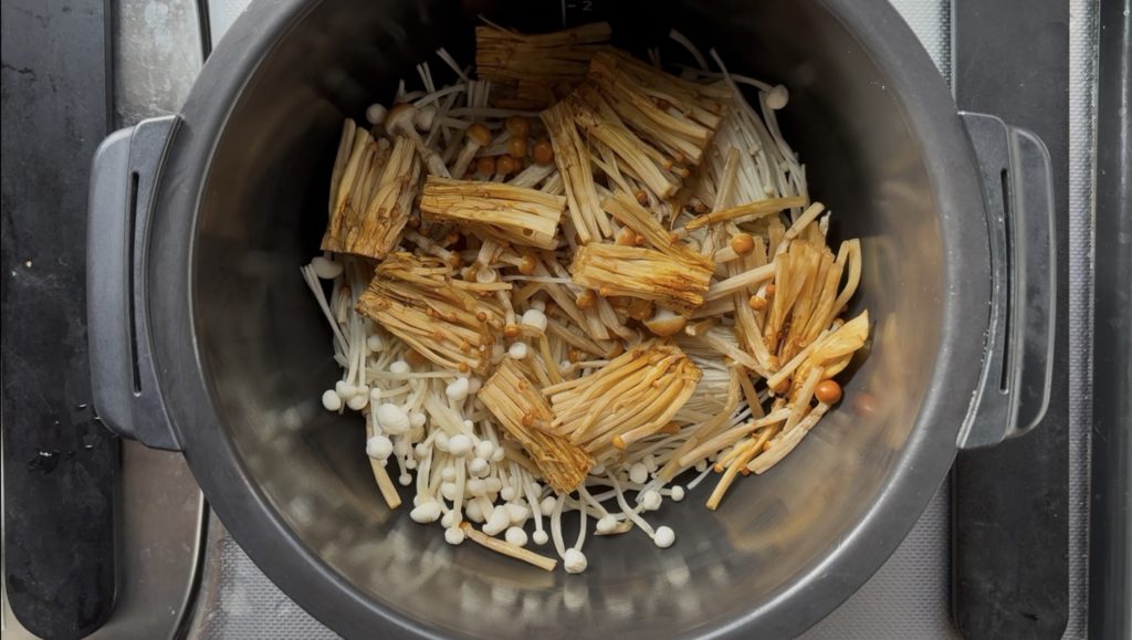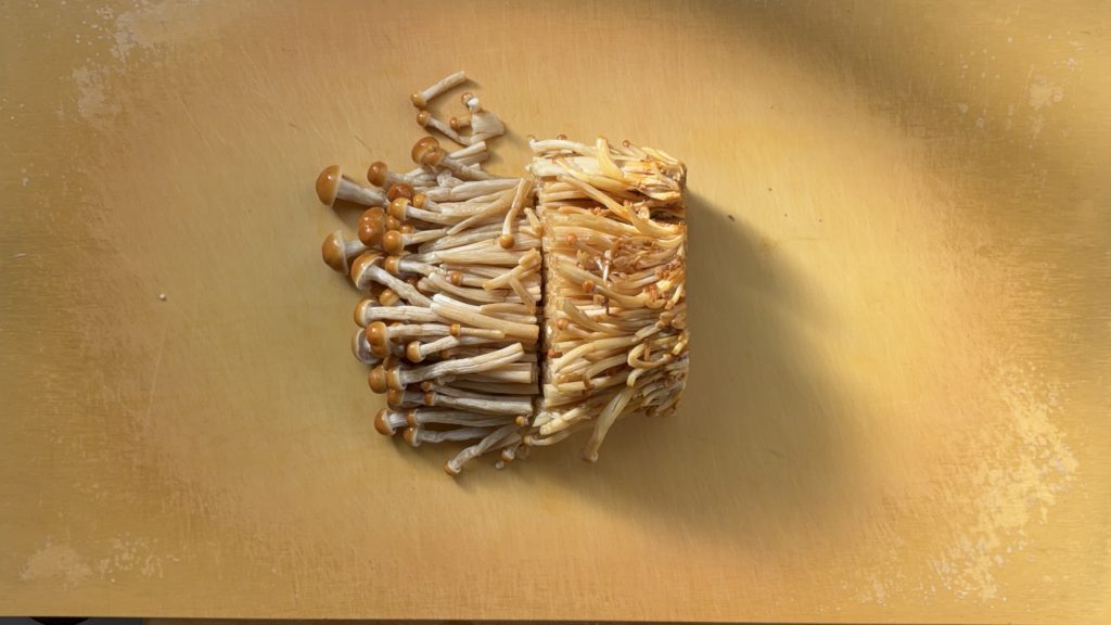 そこに、えのきのやさしい土っぽい香りと、茶えのき特有のコク深い香りが重なります。