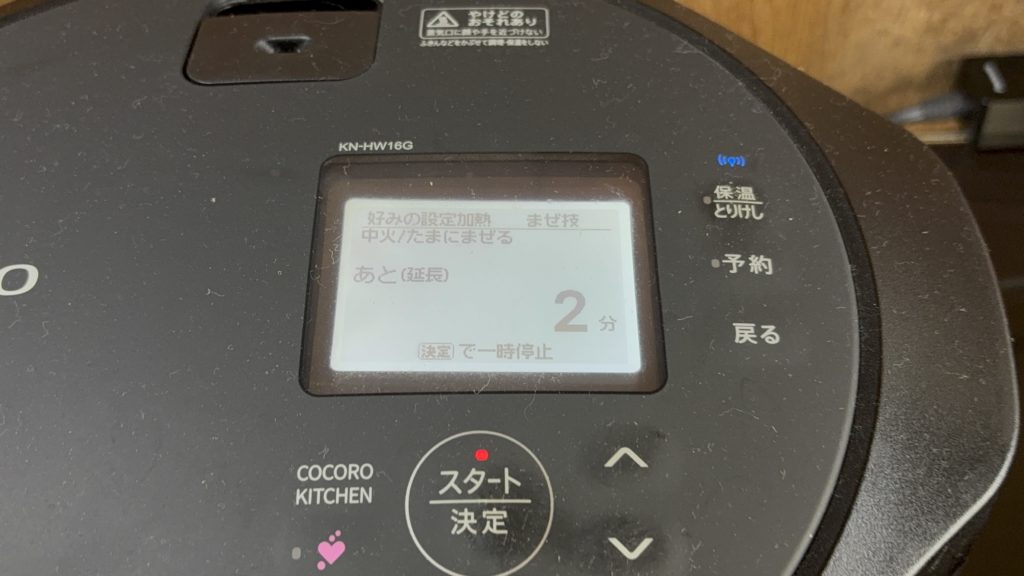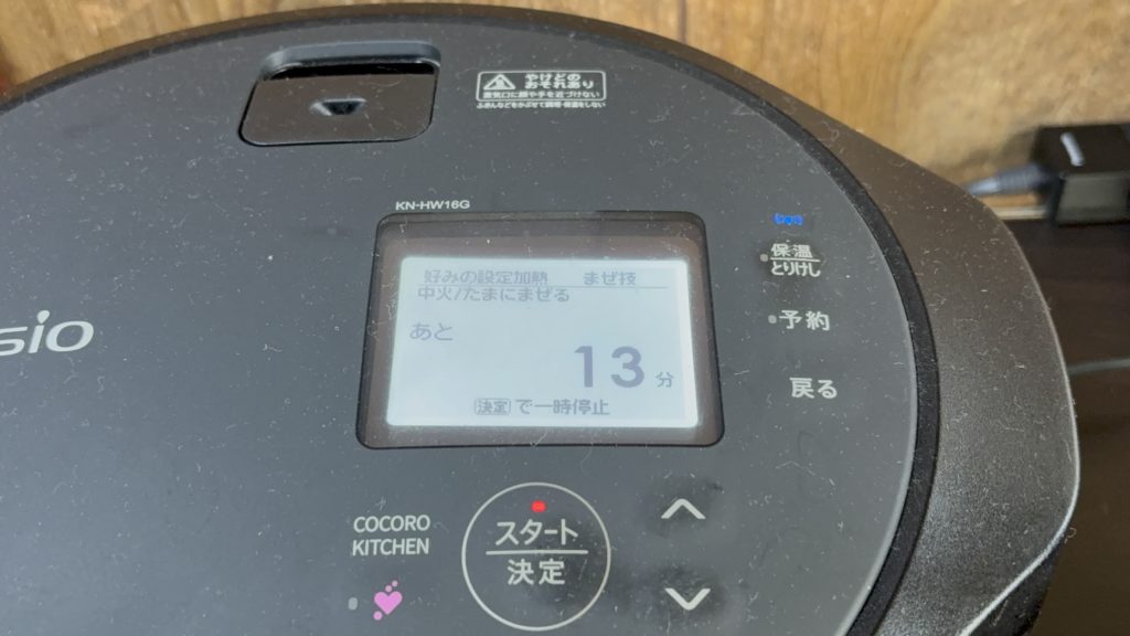 3.好みの設定加熱→中火→たまにまぜる→13分で調理スタート