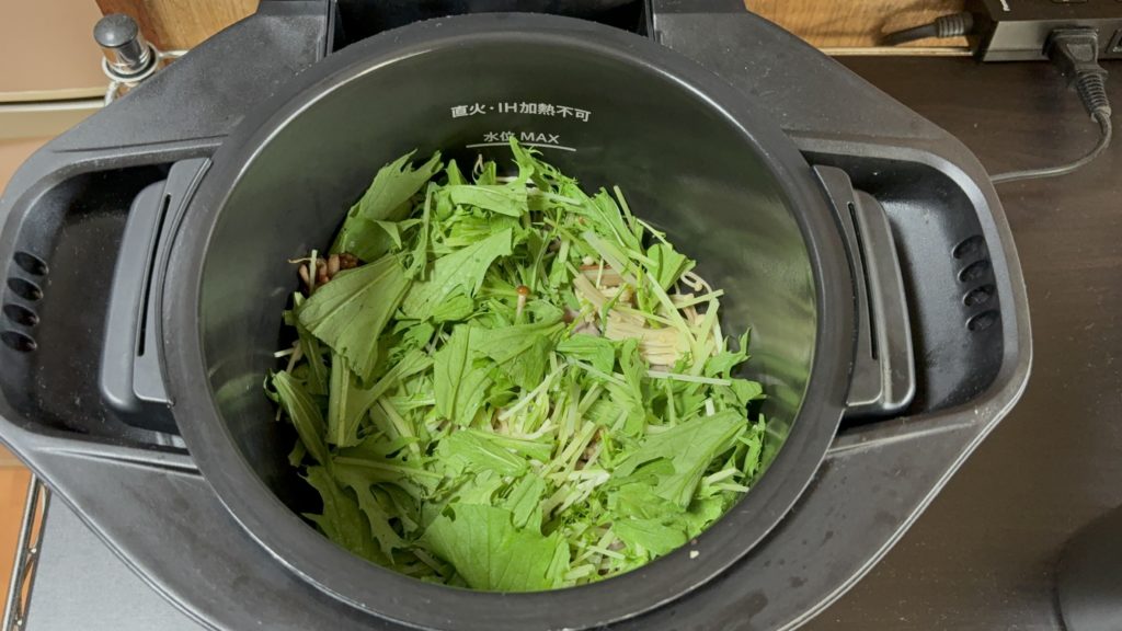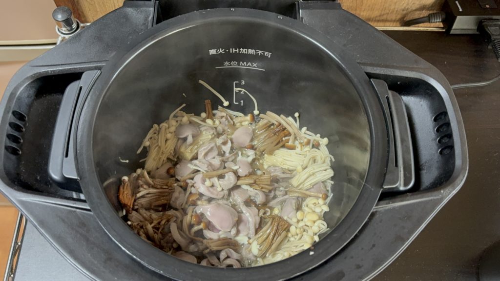 全体の調理時間は30分ほどかかります。材料の下ごしらえに10分、ホットクックの加熱が20分ほどです。