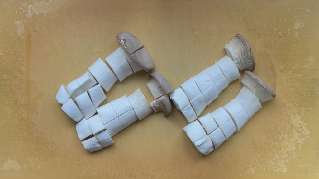 エリンギは角切りにすることで存在感が増し、コリッとした歯ごたえがアクセントに。