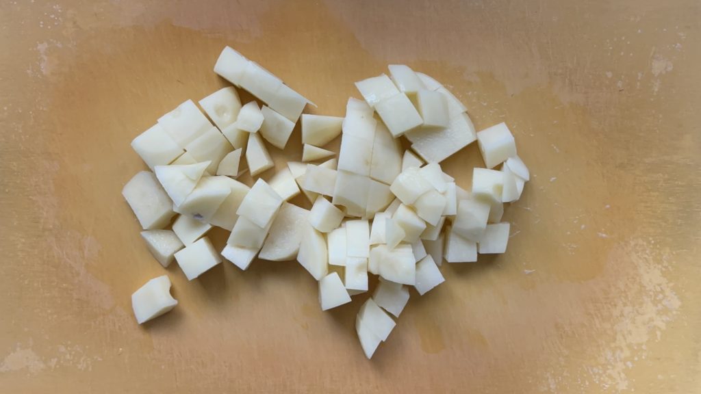 じゃがいもは1.2cm角に切る