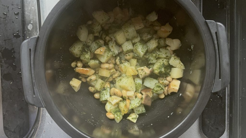 ホットクックで火入れされたじゃがいもは、角を残しながらもホクッと柔らか。