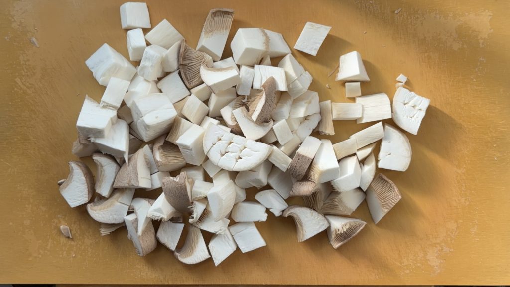 ほくほくと自然な甘みのじゃがいも、旨みの詰まった大豆、そしてほんのり土っぽさを残すエリンギがそれぞれの個性を保ちつつ、カレーの風味をまとって調和します。
