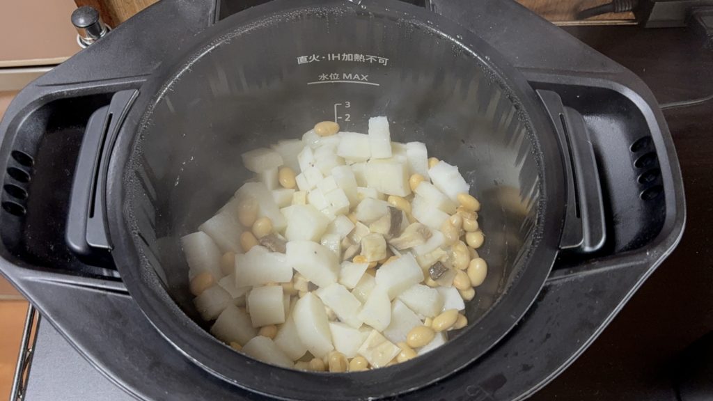 全体の調理時間は30分ほどかかります。材料の下ごしらえに10分、ホットクックの加熱が20分ほどです。