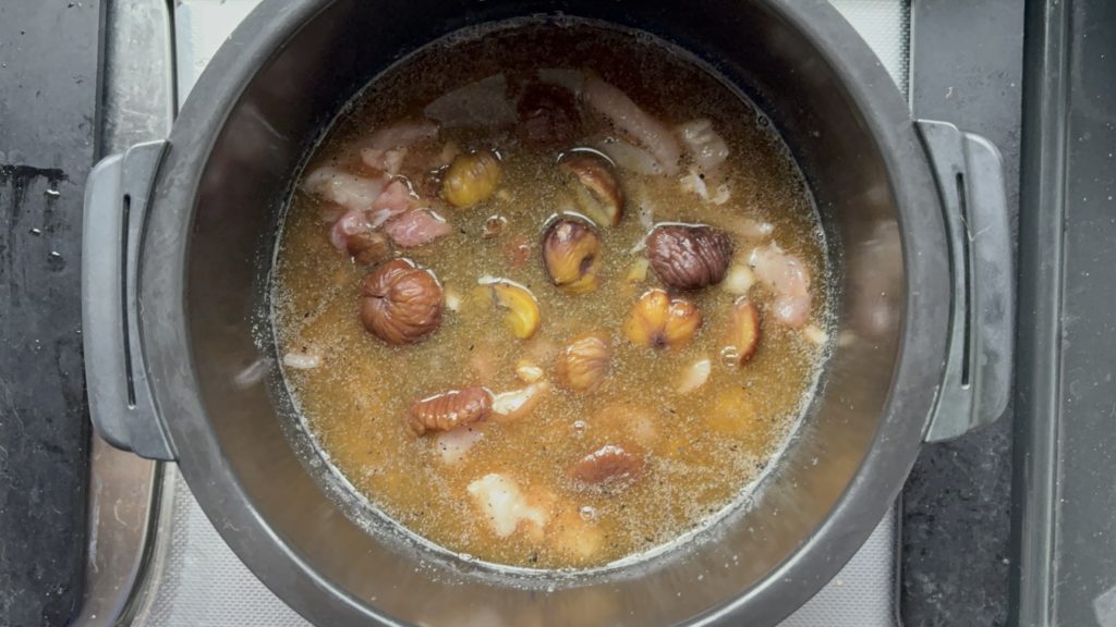 鶏肉とむき栗を上に並べる
