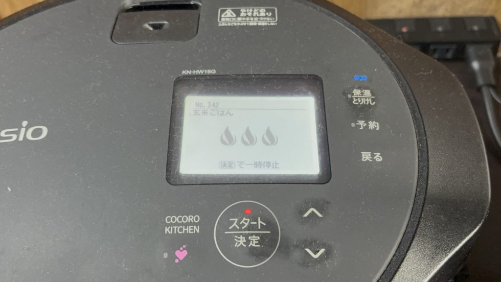 3.DLメニュー【玄米ごはん】で調理スタート