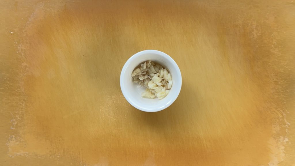 にんにくとしょうがの風味が広がり、一味唐辛子の刺激がアクセントに。