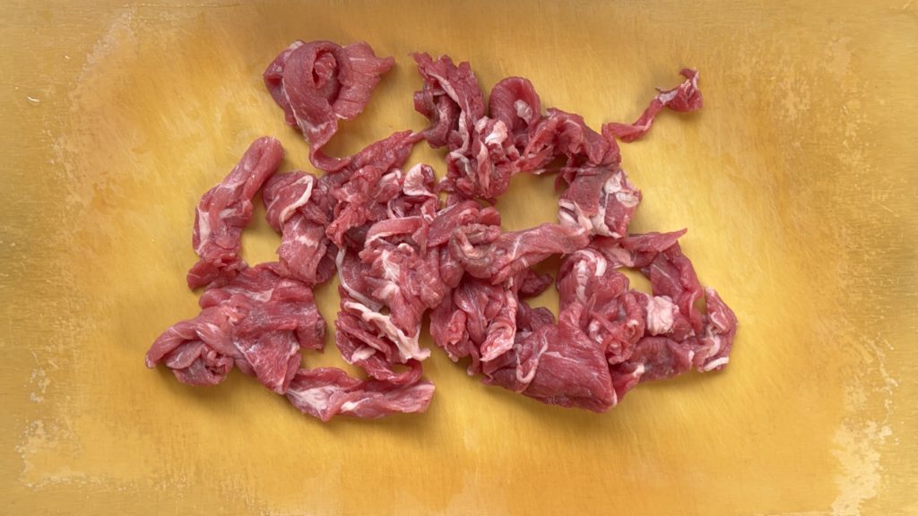 牛肉は3〜4cm幅に切り、片栗粉をまぶす
