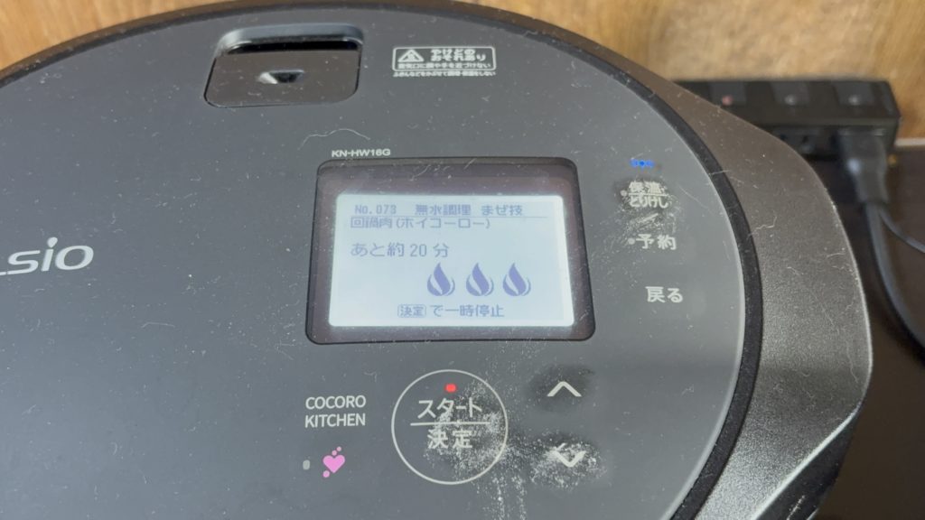 全体の調理時間は30分ほど。材料の下ごしらえに10分、ホットクックの加熱に20分です。