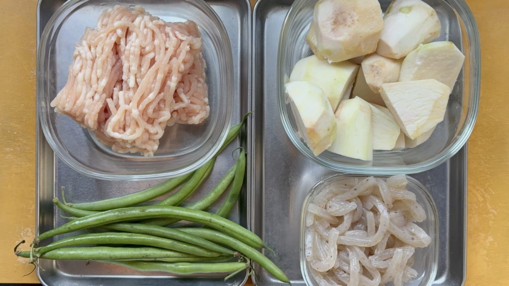 •里芋とこんにゃくのそぼろ煮の調理手順