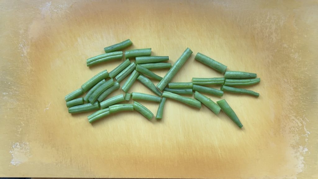いんげんは下手を落として、3等分に切る