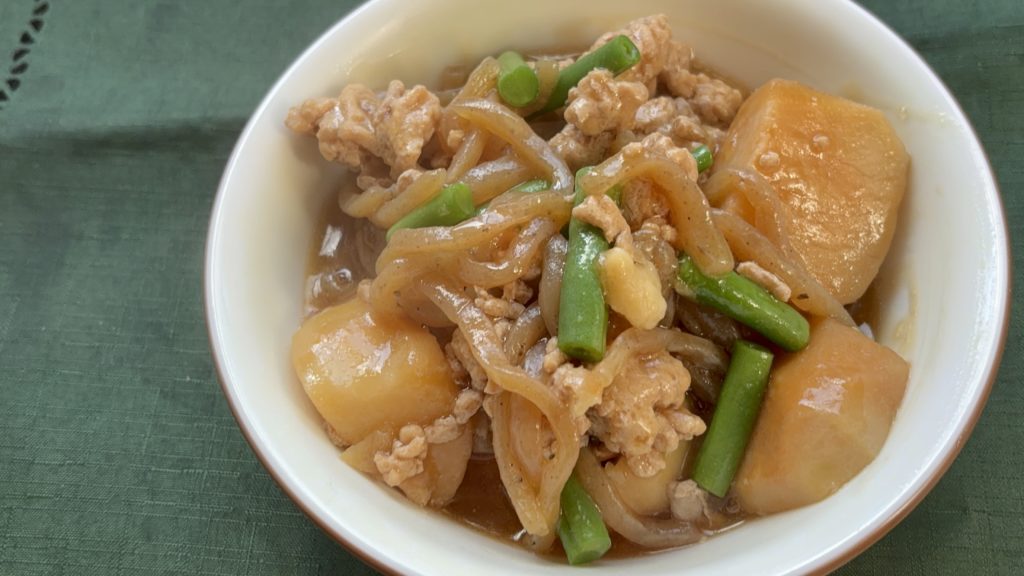 こんにゃくの弾力といんげんの彩りが、素朴ながらも満足感のある仕上がりに。