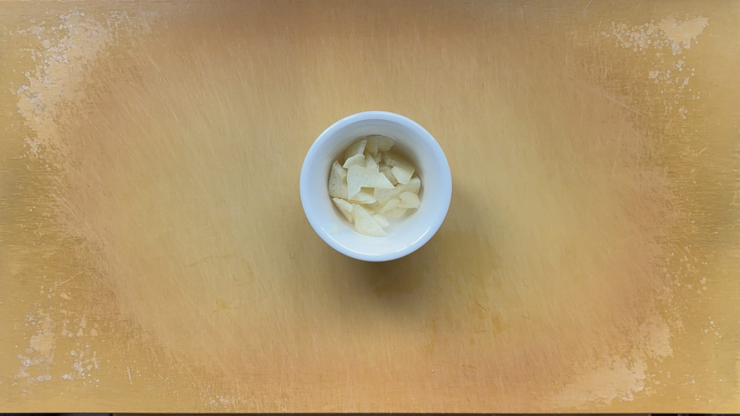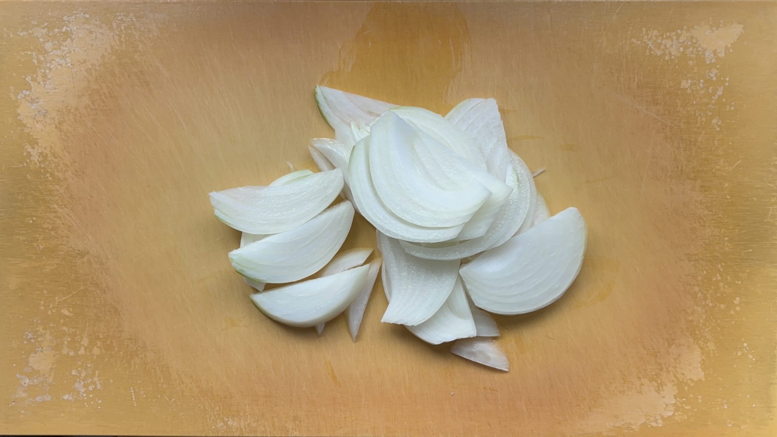 玉ねぎは繊維に沿って薄切りにし、にんにくは薄くスライスします。