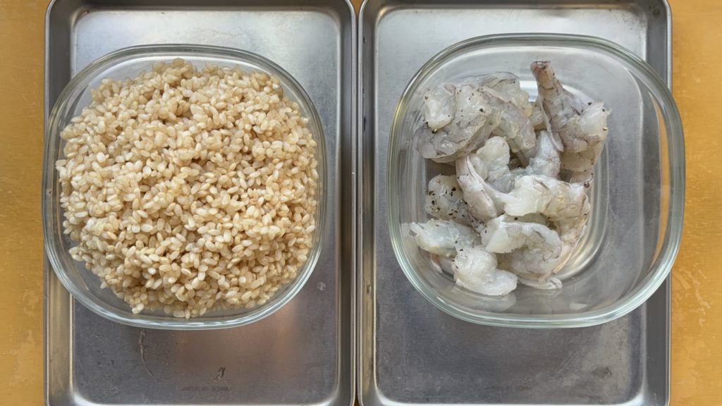 •えびとアボカドのカレー玄米炊き込みご飯の調理手順