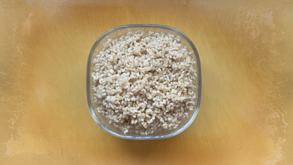 玄米は20分ほど水に浸して水気を切る
