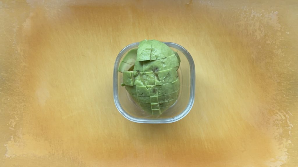 アボカドは種を抜いて皮を剥き、2cm角に切る