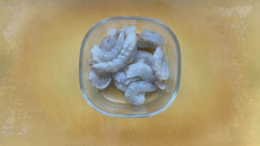 えびは殻を剥き、背ワタを取り除く。塩・酒・片栗粉(分量外)を揉み込み、流水で洗って水気を拭き取り、塩をまぶす。