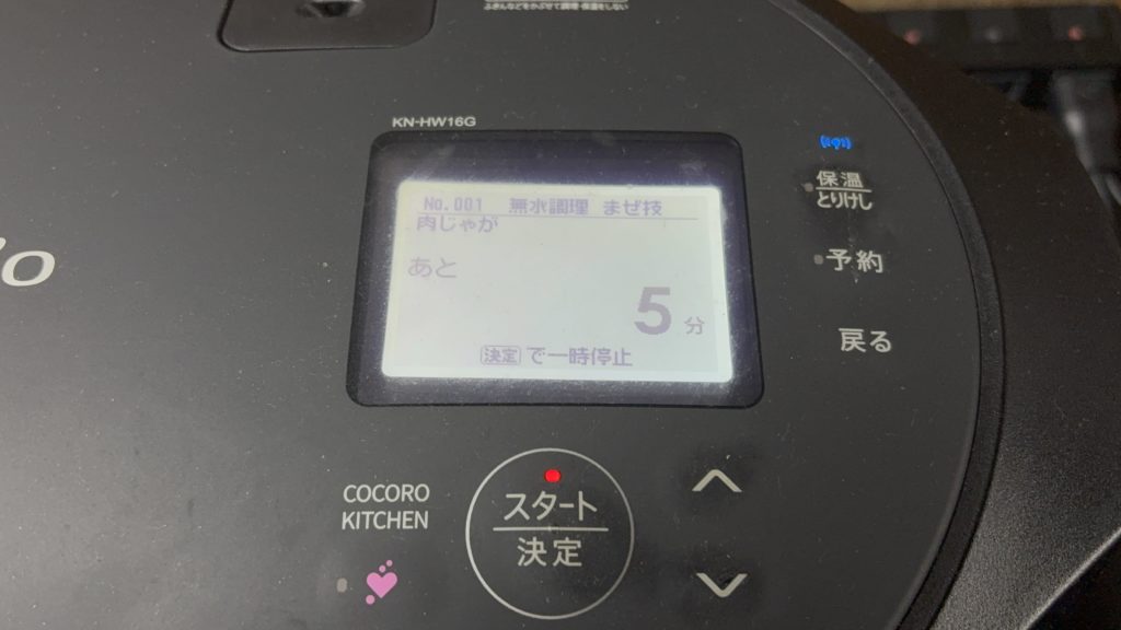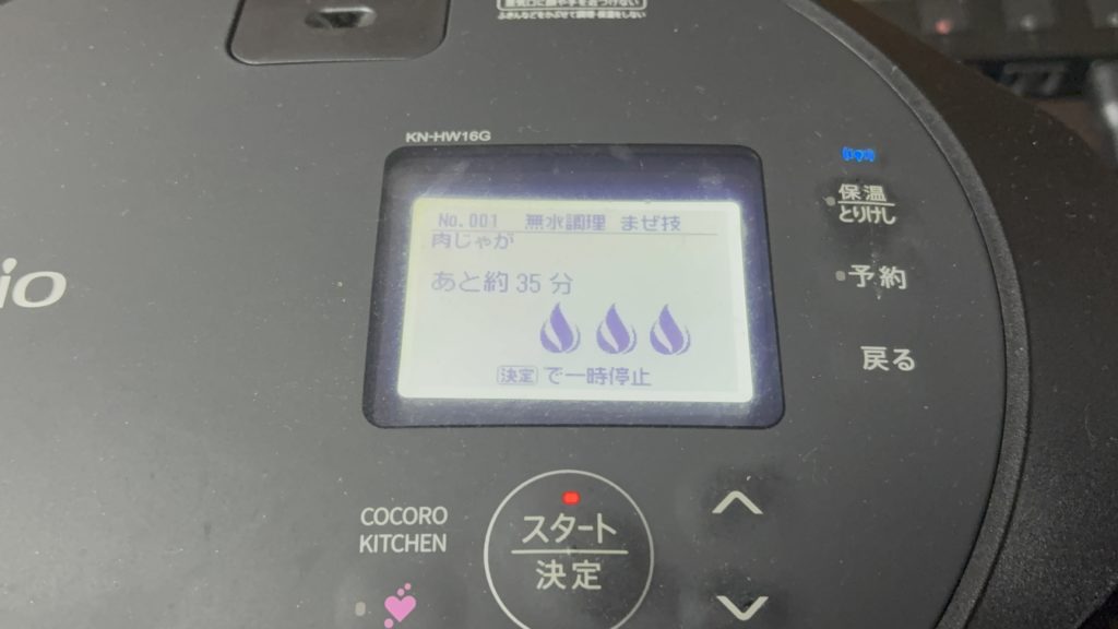 全体の調理時間は50分ほど。下ごしらえに15分、ホットクックの加熱に35分ほどかかります。