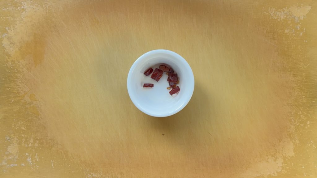 こんにゃくのぷるっとした食感が楽しく、鷹の爪の辛味が全体を引き締めます。
