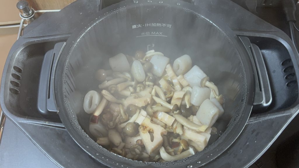 全体の調理時間は30分ほどかかります。材料の下ごしらえに10分、ホットクックの加熱に20分ほどです。