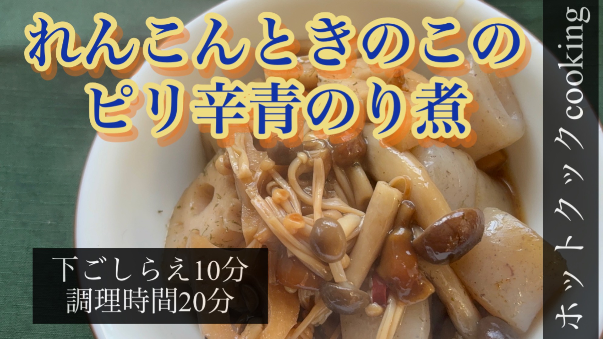「れんこんときのこのピリ辛煮」は、れんこんの歯ごたえときのこの旨味が主役の、やみつきになるおかずです。ピリッとした辛さが後を引き、冷めてもおいしく楽しめます。青のりを加えることで香りと彩りが増し、普段の食卓にもおつまみにもぴったりの一品です。