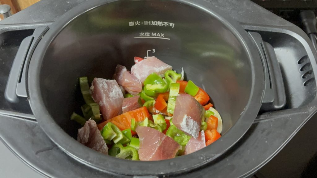 全体の調理時間は35分ほどです。下ごしらえに15分、ホットクックの加熱に20分ほどかかります。