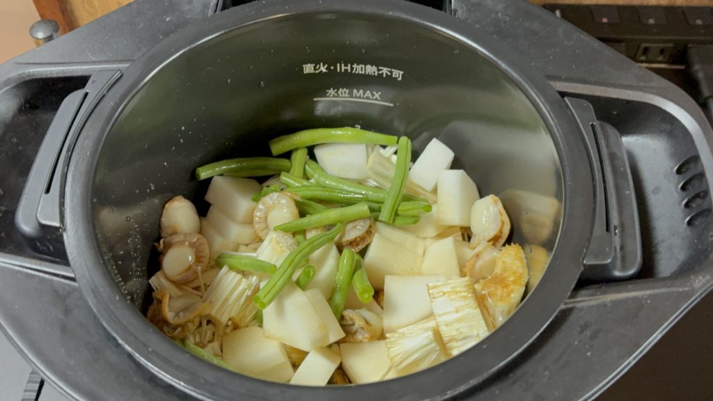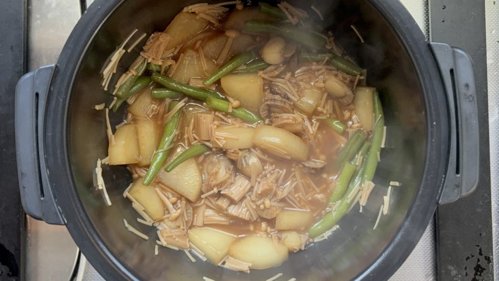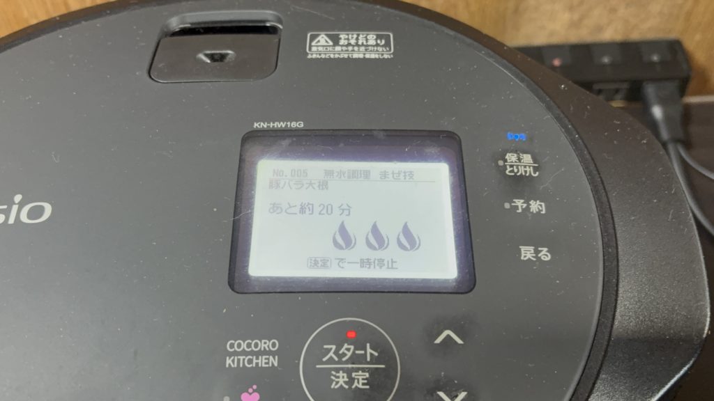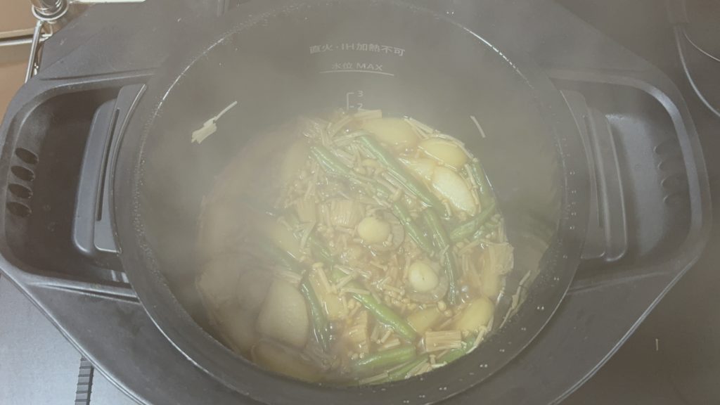 全体の調理時間は30分ほどです。材料の下ごしらえに10分、ホットクックの加熱に20分ほどかかります。