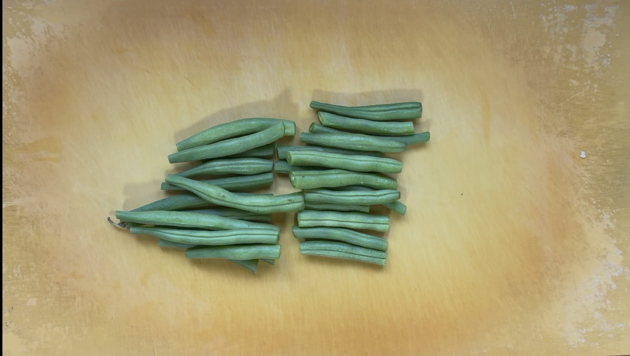 いんげんはヘタを落として横2等分に切る