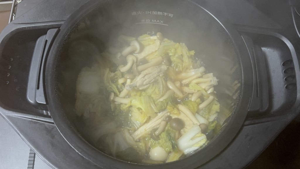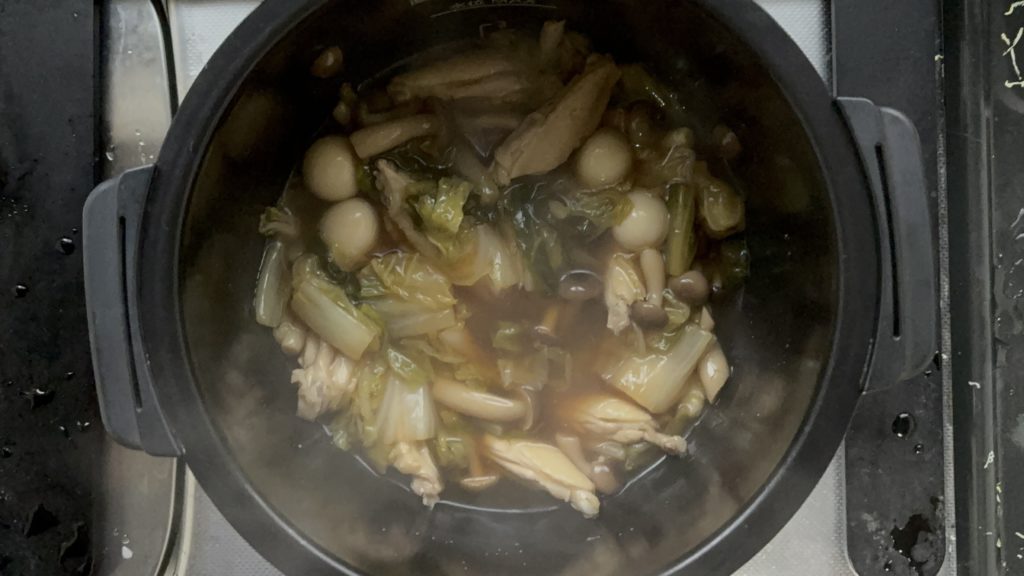 全体の調理時間は30分ほどです。材料準備に10分、ホットクックの加熱に約20分かかります。