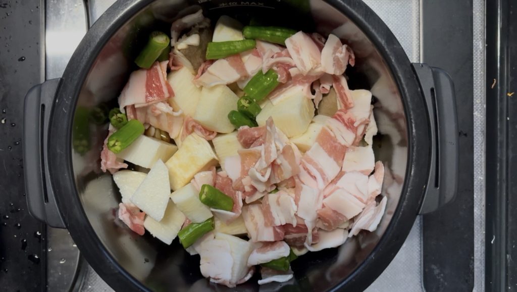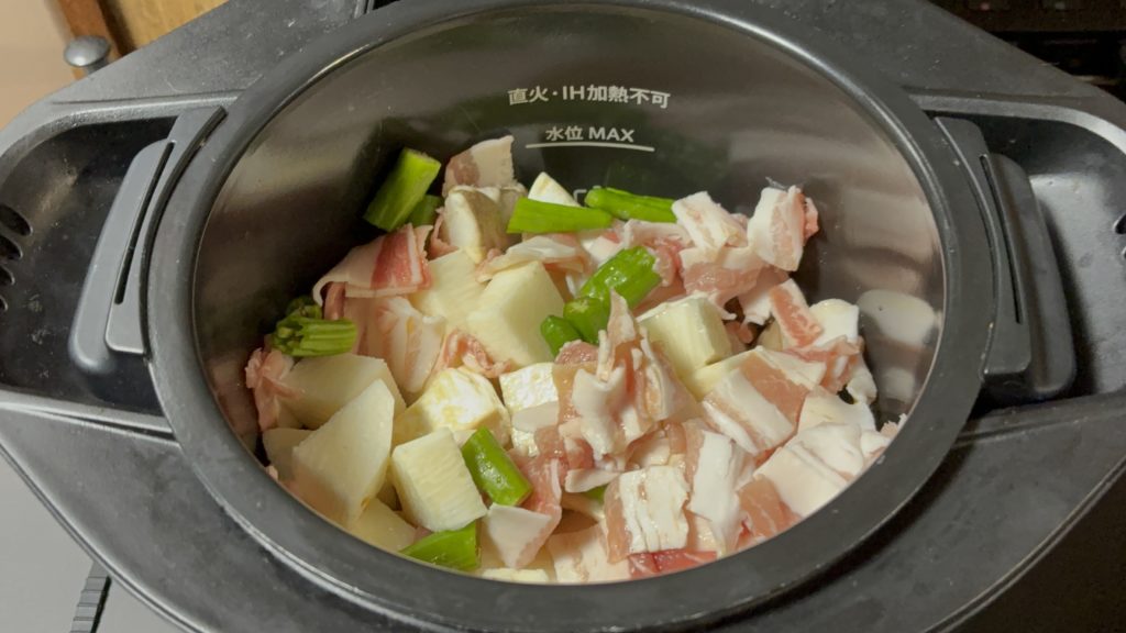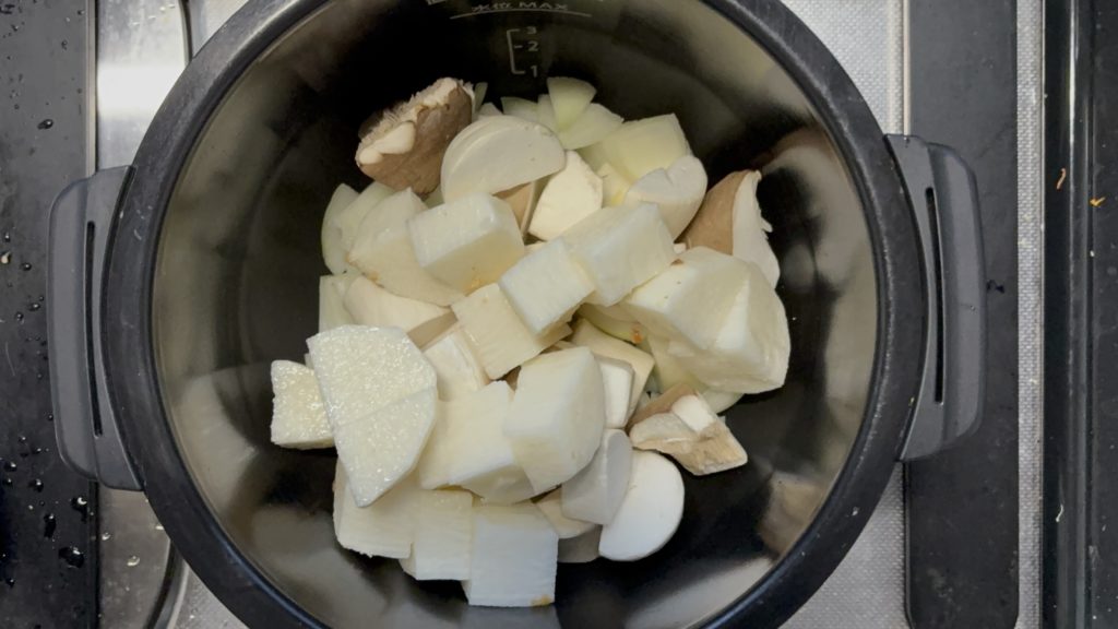 全体の調理時間は30分ほどです。下ごしらえに10分、ホットクックの加熱に20分ほどかかります。