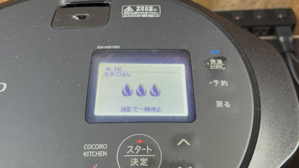 メニューを選ぶ→メニュー番号で選ぶ→342→【玄米ごはん】で調理スタート