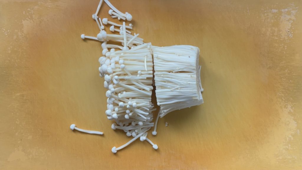 えのきは石突きを落として横に2等分に切る