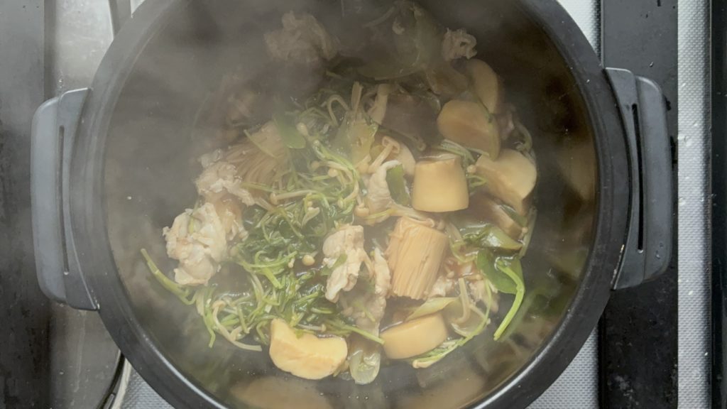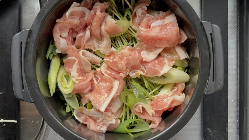 •豚肉きのこ豆苗のすき煮の調理手順