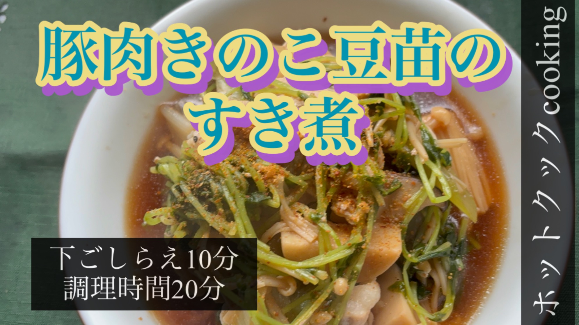 豚肉ときのこの旨みしみ込む。豆苗たっぷり簡単すき煮、豚肉きのこ豆苗のすき煮!