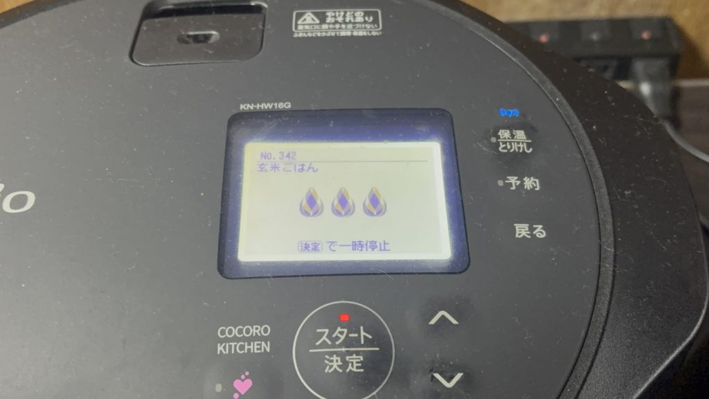 メニューを選ぶ→メニュー番号で探す→342→【玄米ごはん】で調理スタート