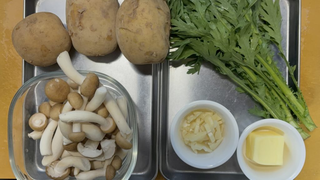 •じゃがいもと春菊のバター炒めの調理手順