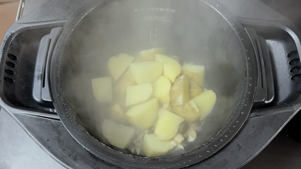 全体の調理時間は30分ほどです。下ごしらえに10分、ホットクックでの加熱に20分ほどかかります。