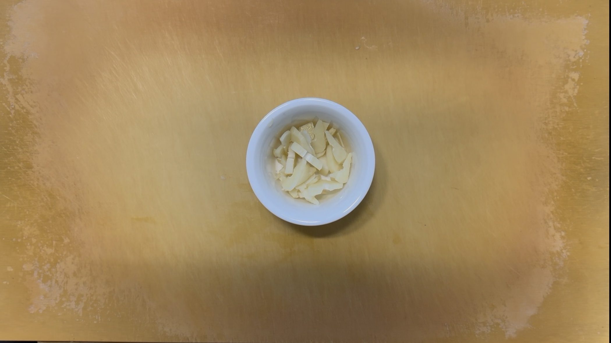 にんにくは薄くスライスする